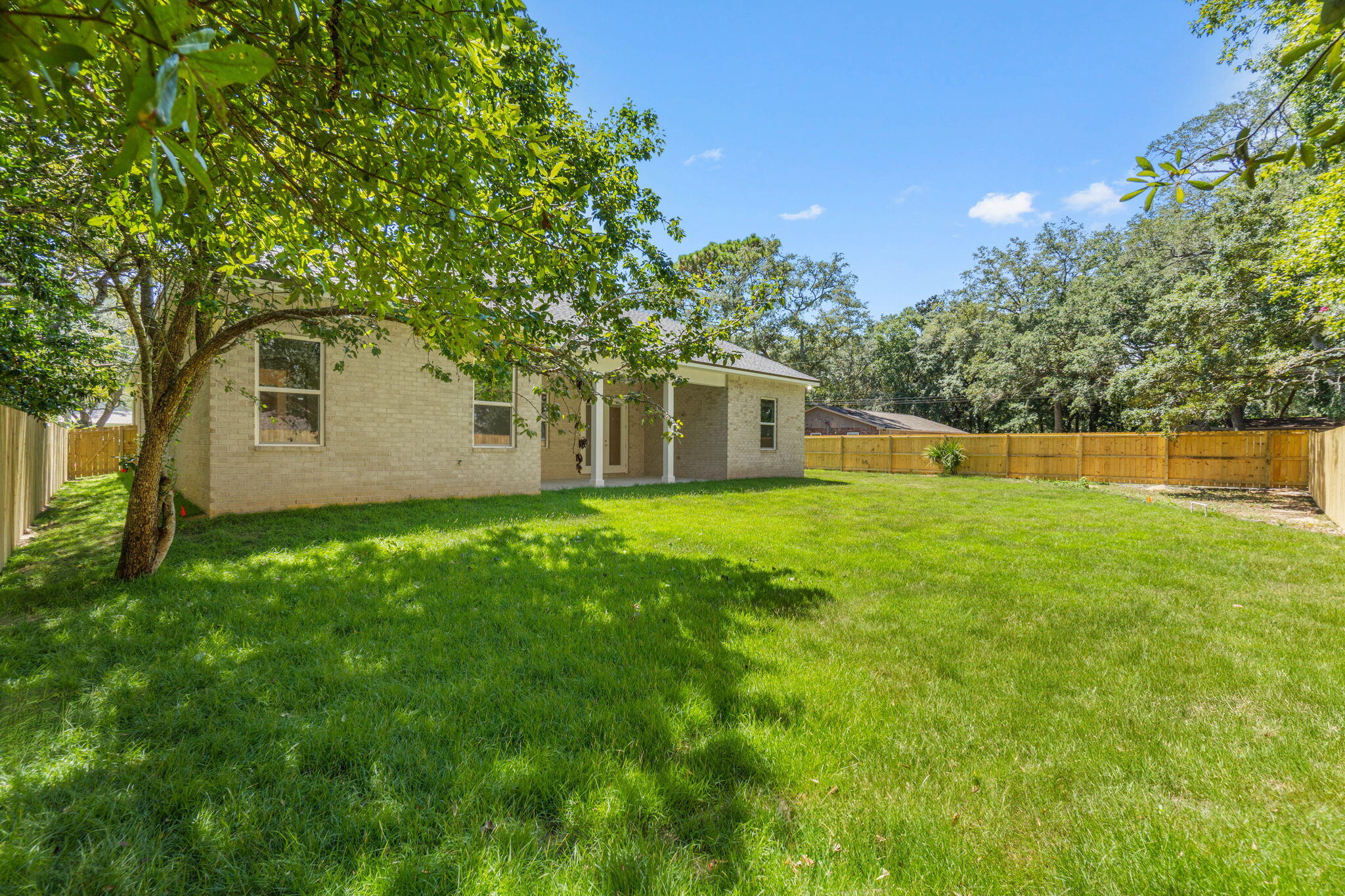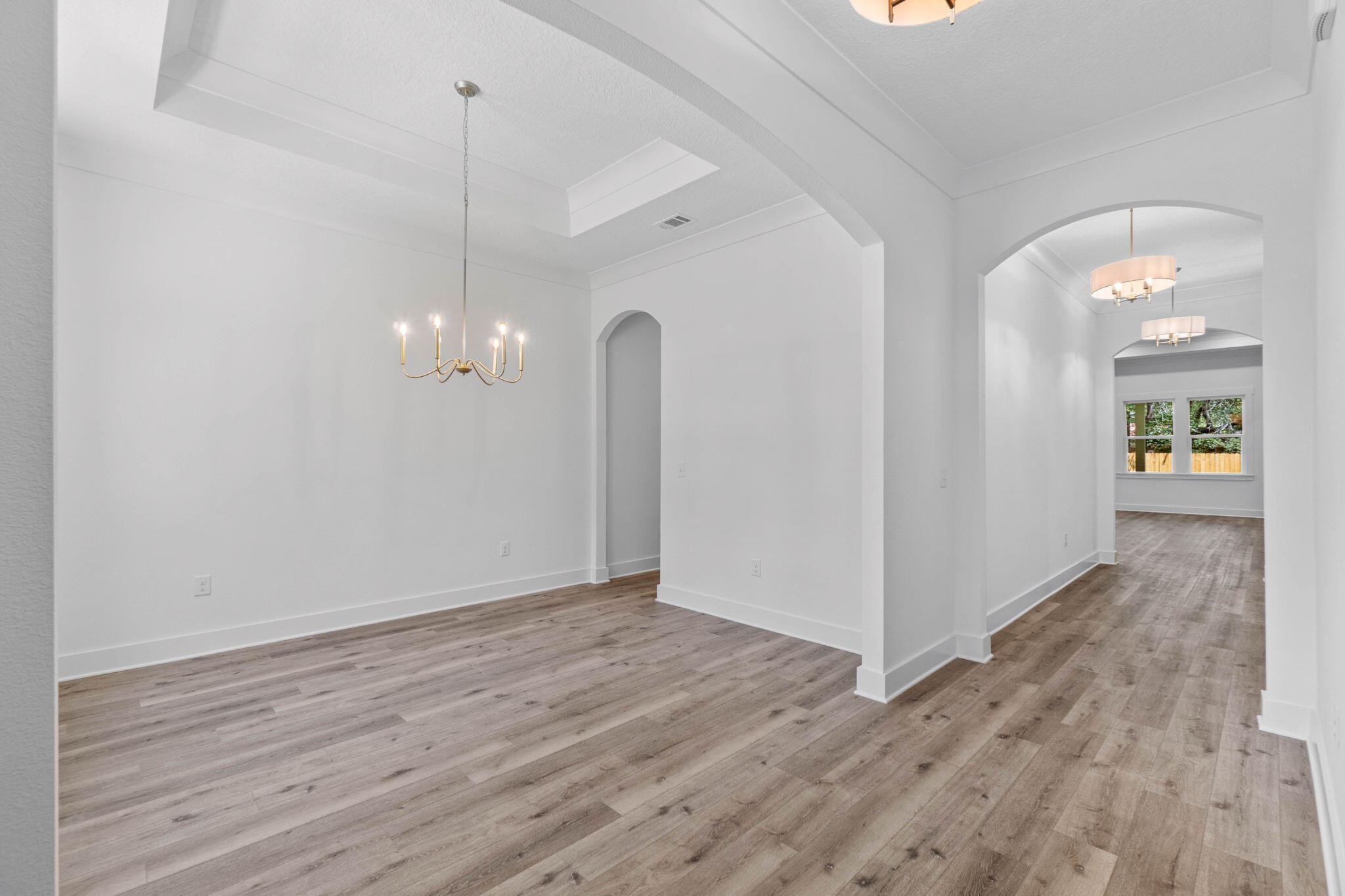 The open-concept living space is a showcase of style and functionality, with LVP floors throughout and oversized windows that invite an abundance of natural sunlight. The living room invites you to unwind by the brick fireplace, while the chef's kitchen is a culinary masterpiece. Boasting stainless steel appliances, custom soft-close cabinetry, quartz countertops, custom range hood vent and a center island that will be wrapped in a board and batten design that doubles as a gathering space or just simply savor your gourmet meals in the cozy dining room. Step outside to your large covered patio creating the perfect ambiance for unforgettable gatherings.